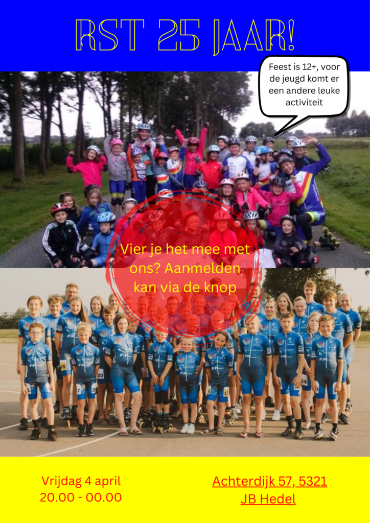 Een feestje kan dan natuurlijk niet ontbreken, we nodigen je uit om het met z’n allen te vieren, leden, oud-leden en sponsoren!